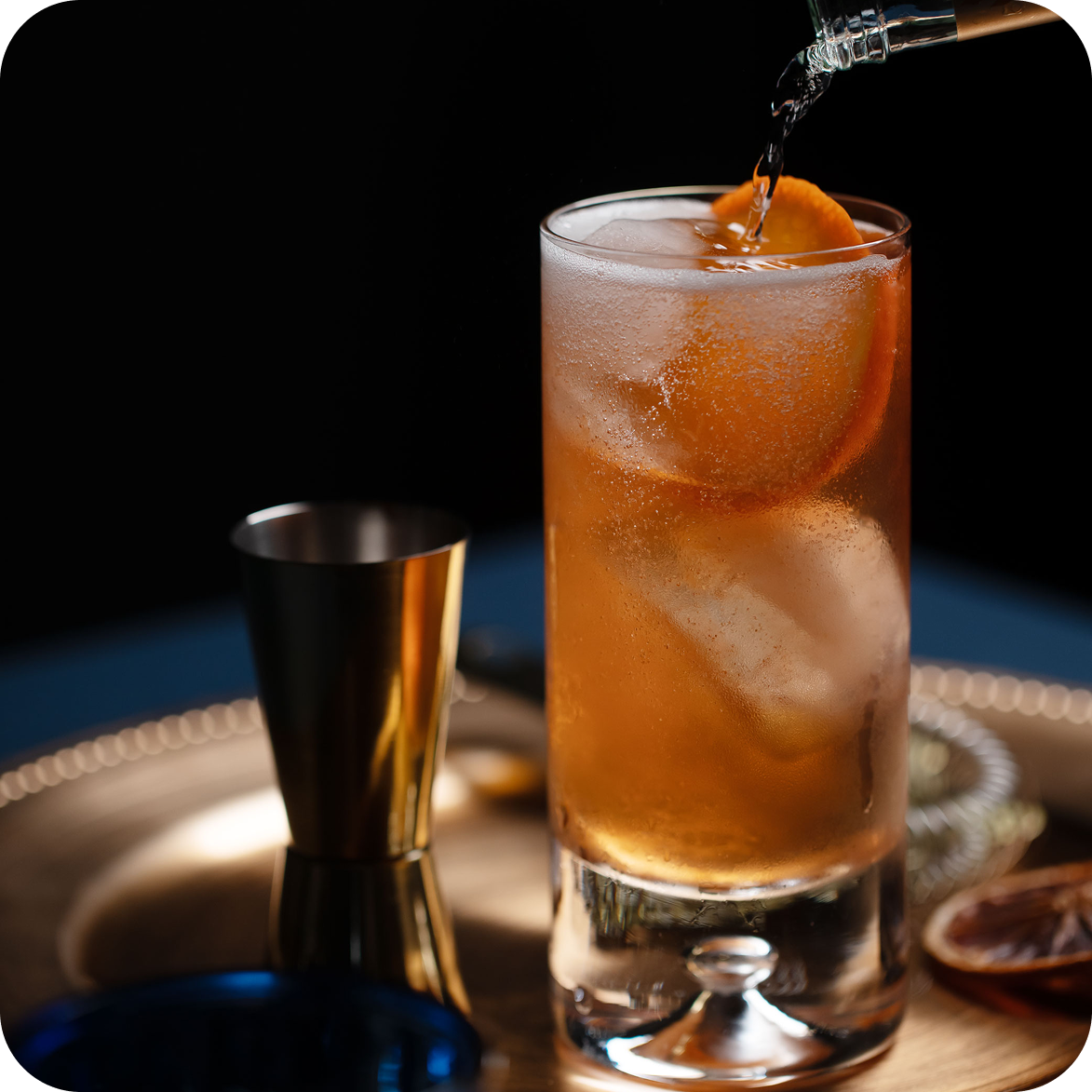 In a mixing glass, add ice cubes and 45ml of Strutter.